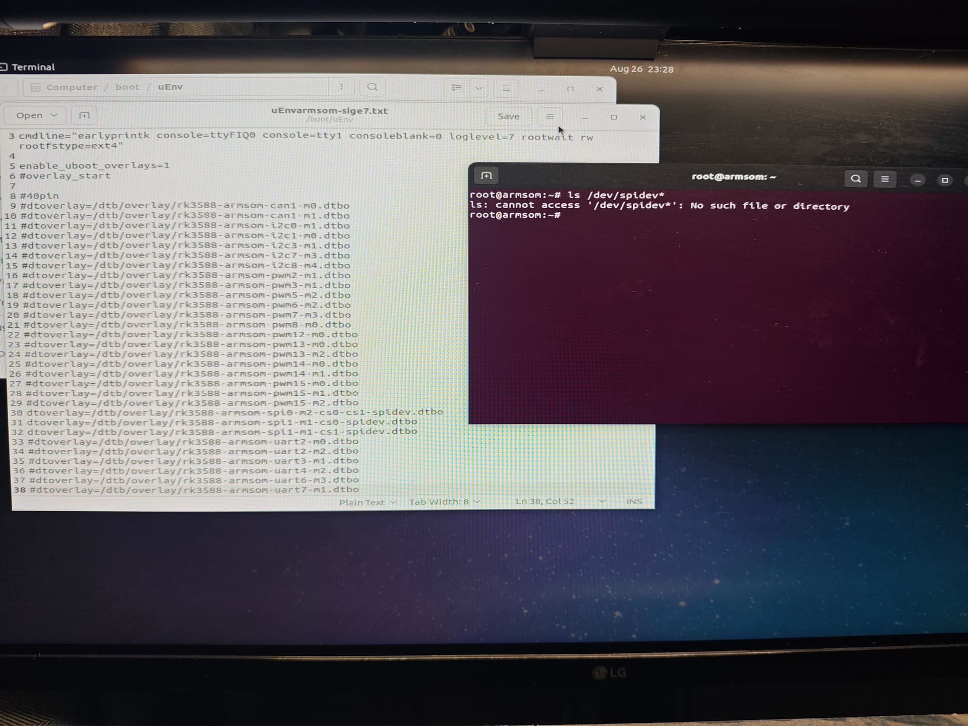 无论#号去掉还是不去掉,ls /dev里面看不到spi。而且安装后,之前已经打开的端口(ls /dev有显示),就算在新的uEnv.txt去掉注释后也不会出现在dev中