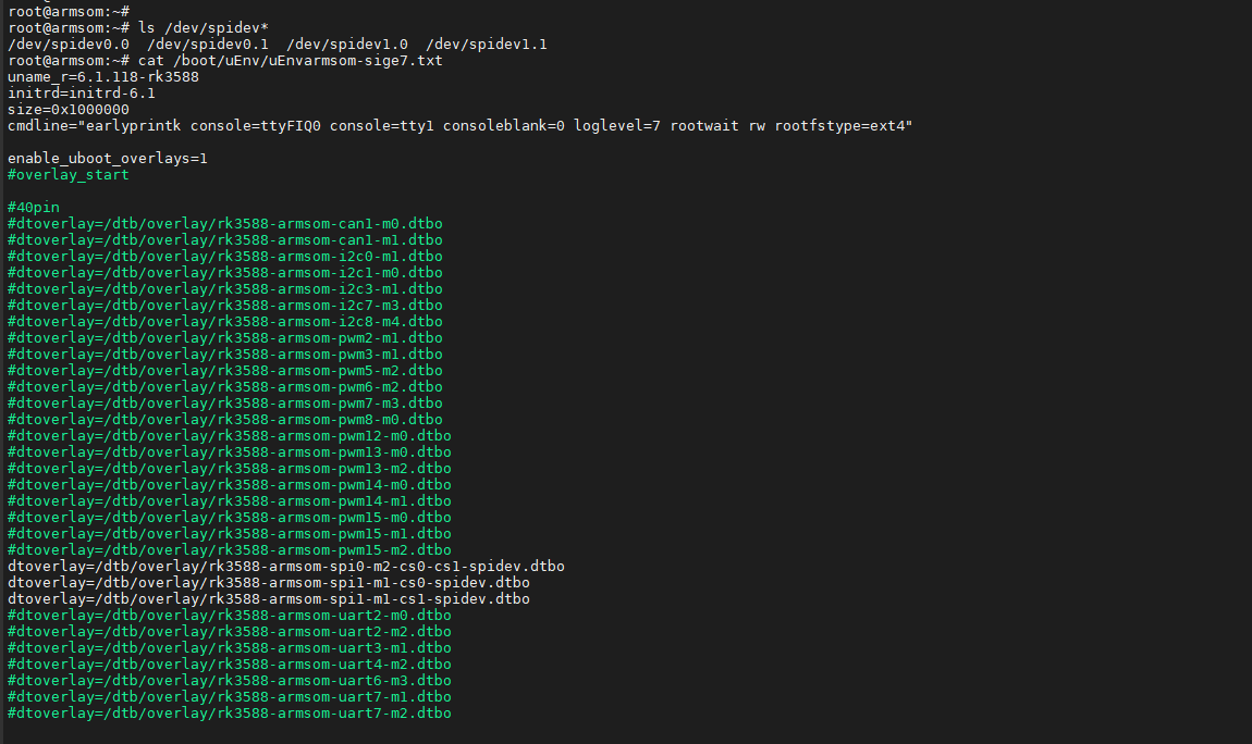 重新安安装本来就是覆盖之前的包,默认是用#注释的,你只要看到/boot/dtb/overlay下面有rk3588-armsom-spi1-m1-cs1-spidev.dtbo这个文件就行了